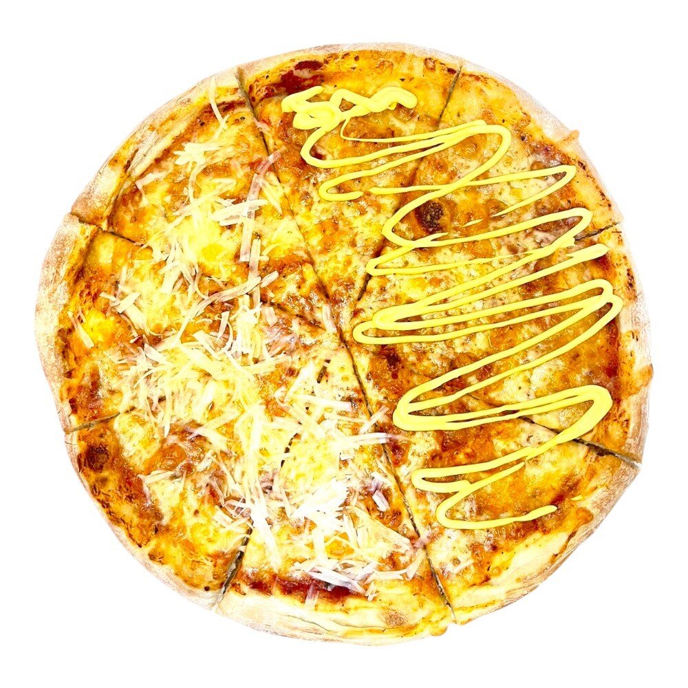 Фирменный томатный соус, вкуснейшее сочетание сыров Сулугуни, Gouda , Parmesan под нежнейшим сырным соусом.